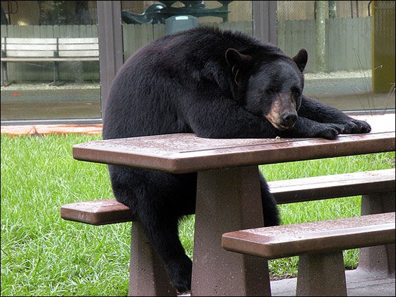 А теперь о другом мишке: говорят в глубине зоопарка есть маленькая клетка, где-то 3 на 3 метра, где сидит обычный бурый мишка. Один.