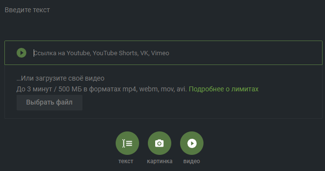 Ткните на кнопку "видео" при создании поста. Можно загрузить до 500 мб.