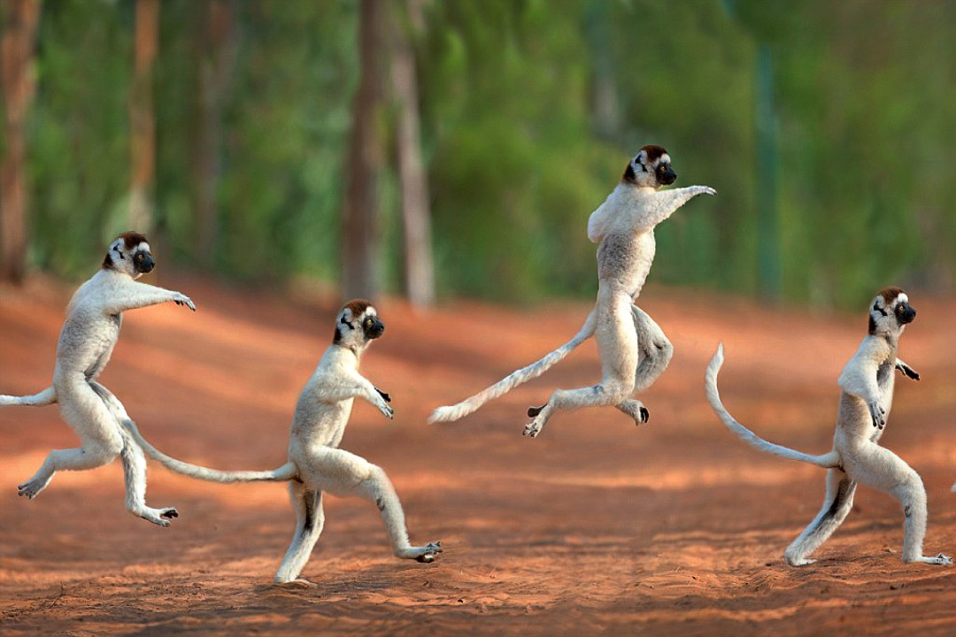 И я немного слукавил, обвинив учёных в том, что они дали примату такое нелепое имя. На самом деле, он тоже взято из лексикона этих замечательных созданий, некоторые виды западных сифак, таким криком привлекают внимание сородичей: "Сии-фаак". Для англичан это слышится, скорее всего комично 😁