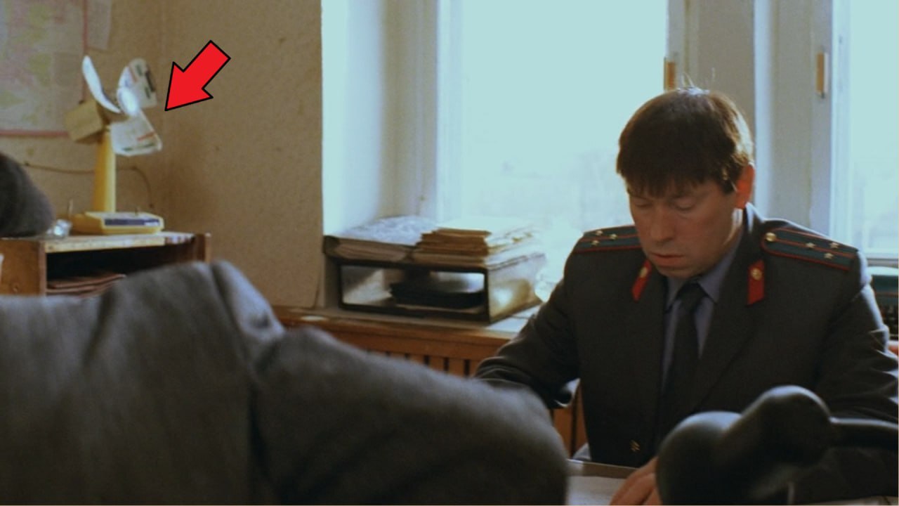 Когда персонаж Гарика Сукачева приходит к старшему лейтенанту, слева можно разглядеть вентилятор "Орбита". Существовало несколько моделей данных вентиляторов, а пришли они на замену громоздким чугунным ВЭ-1.