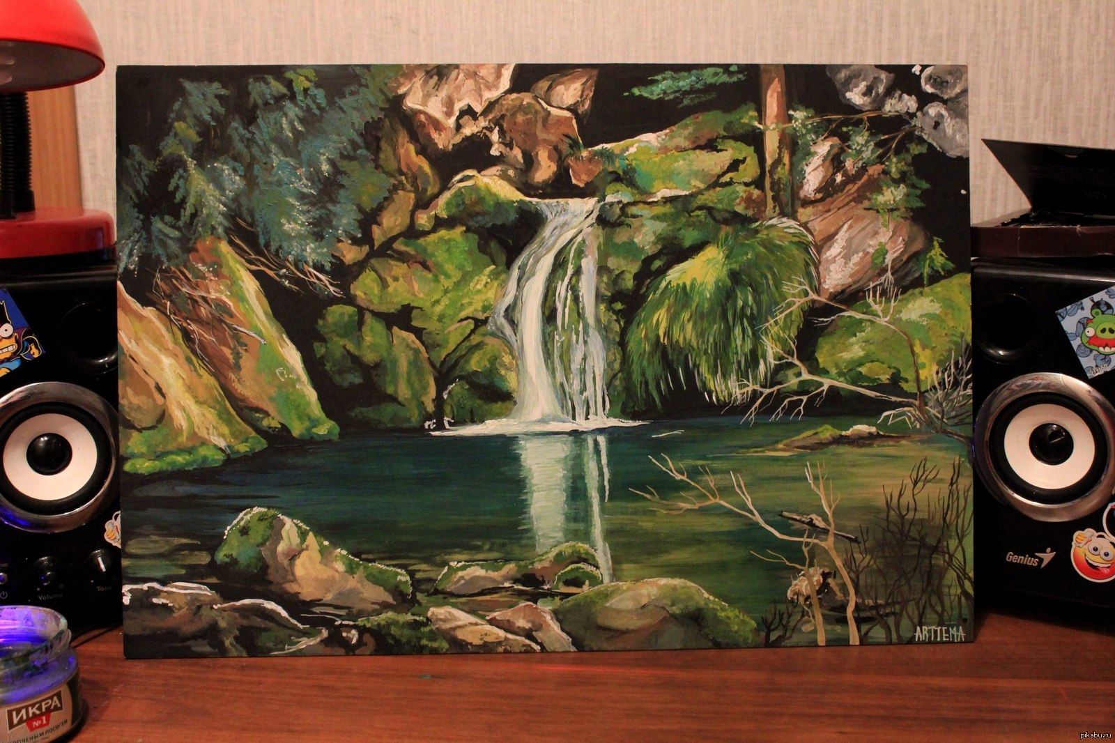 9 brinza 10 лет назад Чтоб природу созерцать... часов потребовалось пять... [моё] Моё Рисунок Пейзаж Водопад Arttema