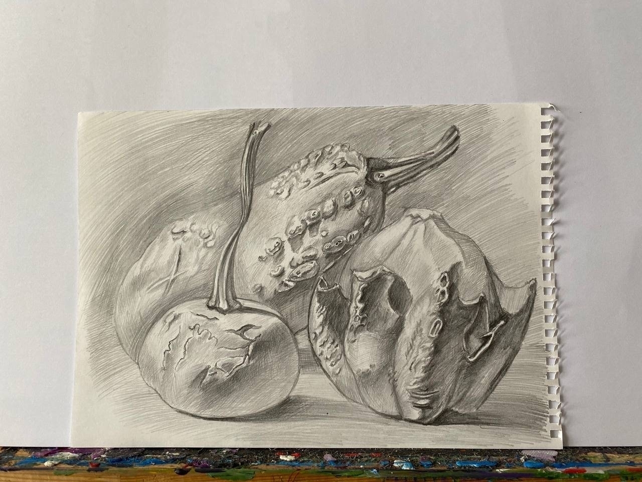 4. Начните рисовать с натуры: Фрукты, овощи, предметы интерьера, цветы на подоконнике - рисуйте все что попадает в ваше поле зрения пока вы за рабочим столом сидите.