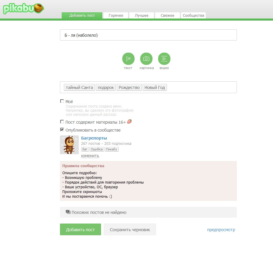 - Версию Пикабу: ПК, мобильная браузерная, приложение Android, приложение iOS- Ваше устройство, ОС, браузер