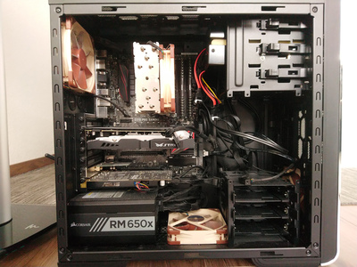 Собрал себе комп. Камень Core i7-6700К, башенный кулер Noctua с PWM, настроил работу вентилятора в биосе в простое 400 оборотов (под нагрузкой нагревается до 60 при оборотах менее 800). Поставил 3 вентилятора в корпус на тех же оборотах, два жестких диска запихал в звукоизолюрующий корпус 5.25 Scythe Quiet Drive. Видеокарта Nvidia в простое тоже не крутится. Блок питания даже под нагрузкой не крутится, потому что комп, больше 300 ватт не потребляет, а у него вентилятор как раз примерно при этой нагрузке включается, да и то включается оборотов на 600. В итоге в метре от компа, непонятно включен он или нет. Шум на уровне фонового. Слышно становится только во время игр и исключительно видеокарту. Все остальное так же бесшумно.