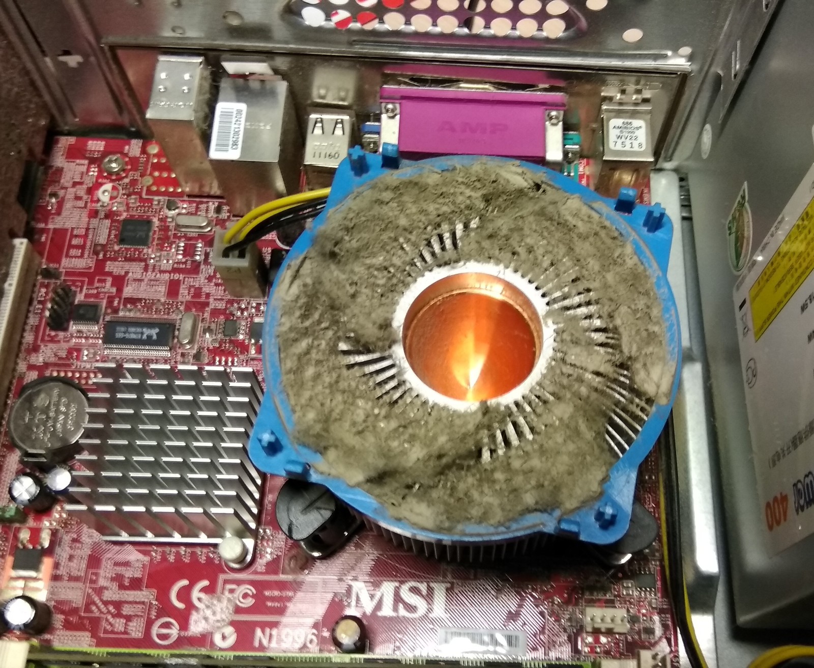 блин. не сфоткал свой вариант. Вобщем на заводе у клиента есть комп для управления станком. Дорогущий пипец. Хотя внутри пень4 и 1 гб озу. Вобщем когда его попытались починить, охрененли от большого количества сисликона и кожной пыли. Это все было покрыто 2х сантиметровым слоем. ВСЕ ВСЕ ВСЕ. А сдох он просто - скачок напряжения в общей сети, питальник не выдержал и потянул за собой мать. Точнее южный мост. Соответственно грусть печаль.