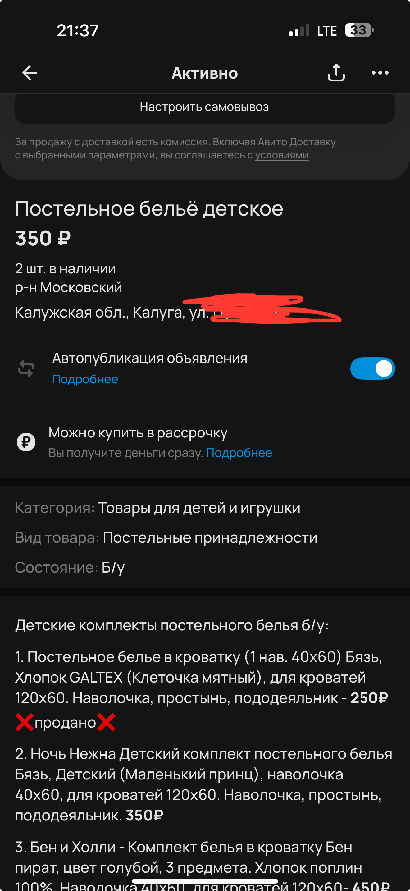 Я довольно много продаю вещей на авито, тем более у меня ребенок, выкидывать жалко, а за чисто символическую цену почему бы и не продать. Есть у меня объявление, где я продаю комплекты постельного белья для кроватки, каждым комплектом пользовались недолго, потому что накупили много, поэтому состояние у всех комплектов хорошее, часто меняли.