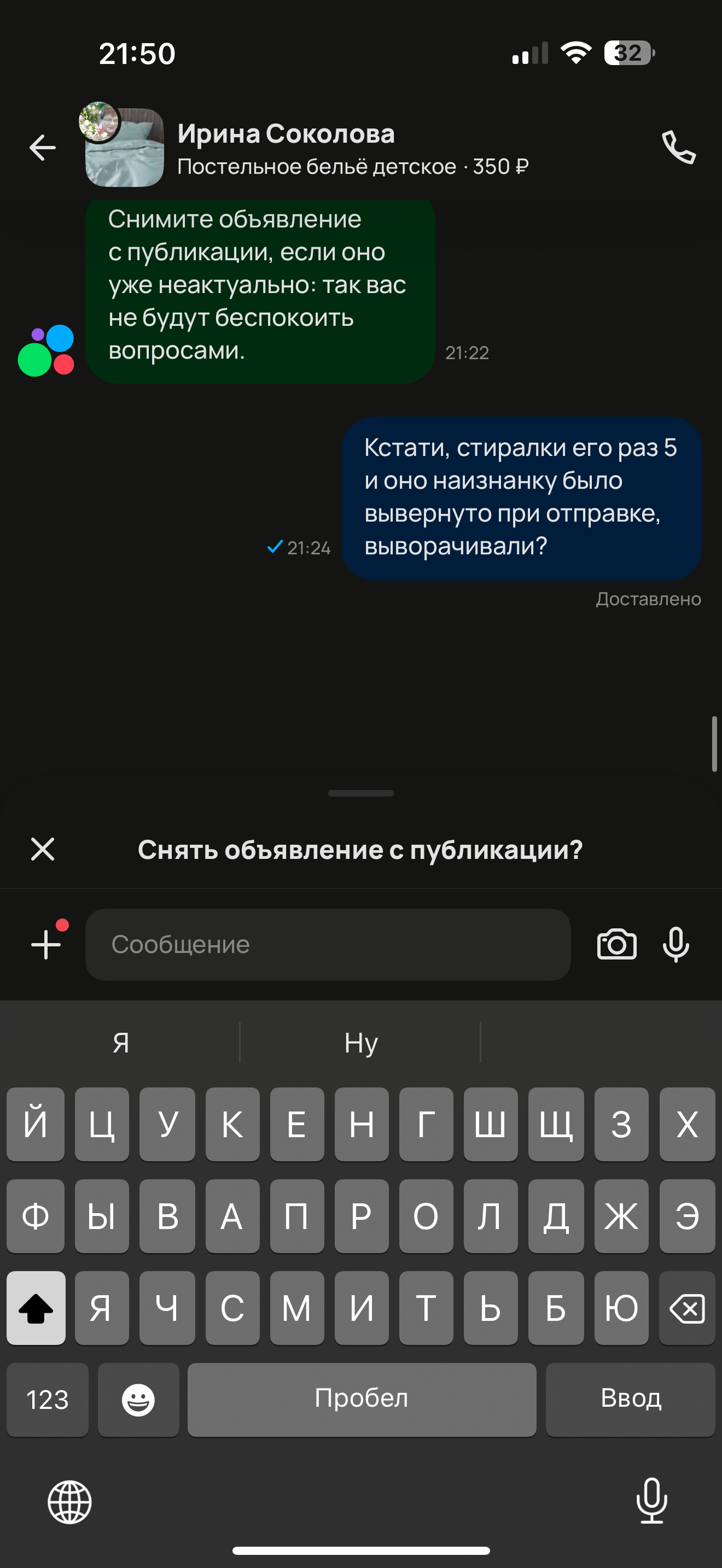 Заказала у меня одна мадам авито доставкой, комплект постельного белья у меня был вывернут наизнанку при отправке, не стала выворачивать, запаковала и отправила.