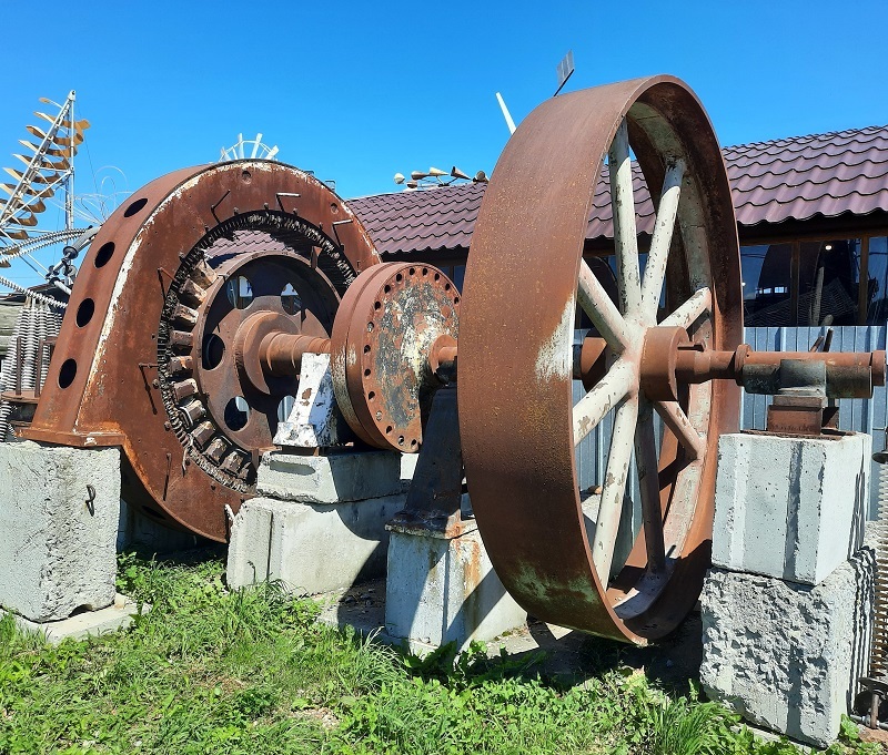 Гидрогенератор. Рядом с музеем установлен огромный экспонат, это гидрогенератор Артинского железоделательного завода, изготовленный в 1915 г.