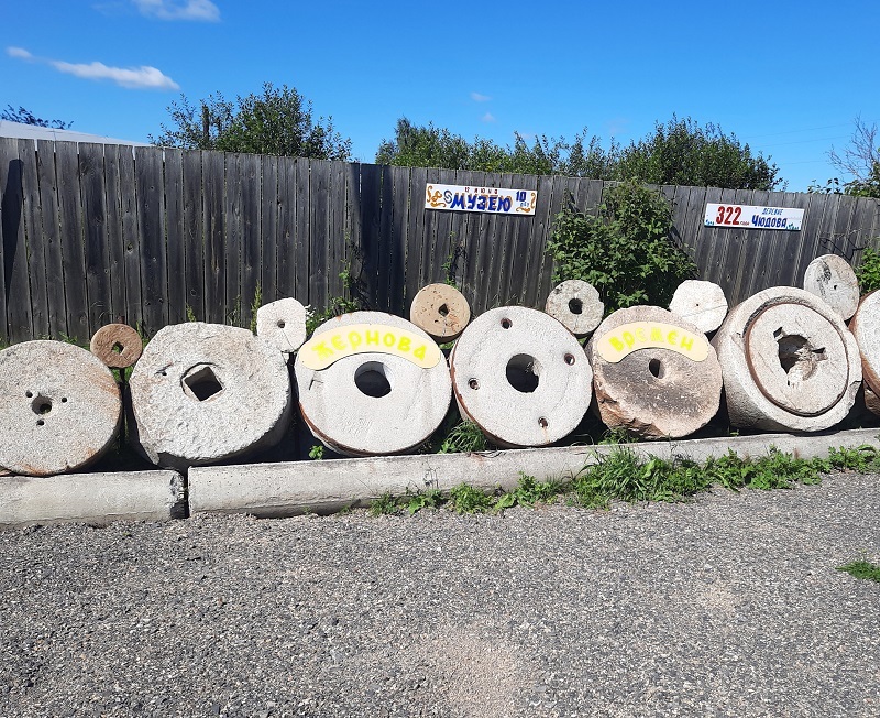 Коллекция жерновов, которые выставлены для обозрения на улице Набережной. Жернова – это парные диски, предназначенные для перемалывания в муку пшеницы и других растительных продуктов. Каменные круги изготовляли из крепкого песчаника, они работали от мускульной силы человека и механической силы.