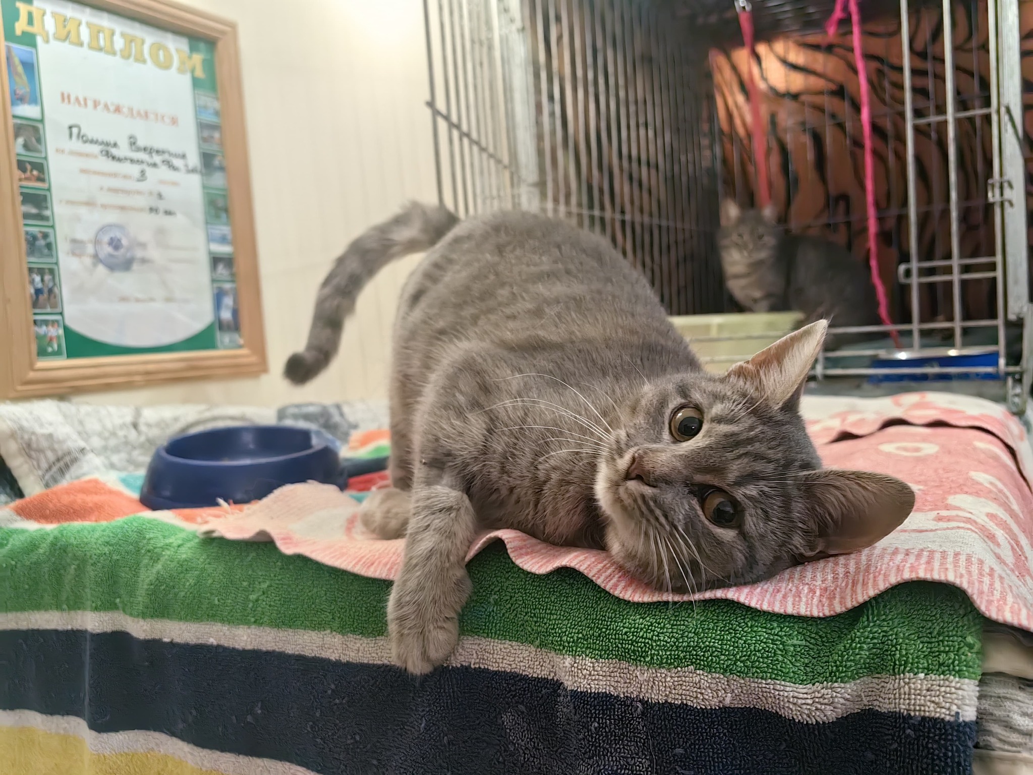 Чудесная ласковая девочка из серого прайда кошки Эммы