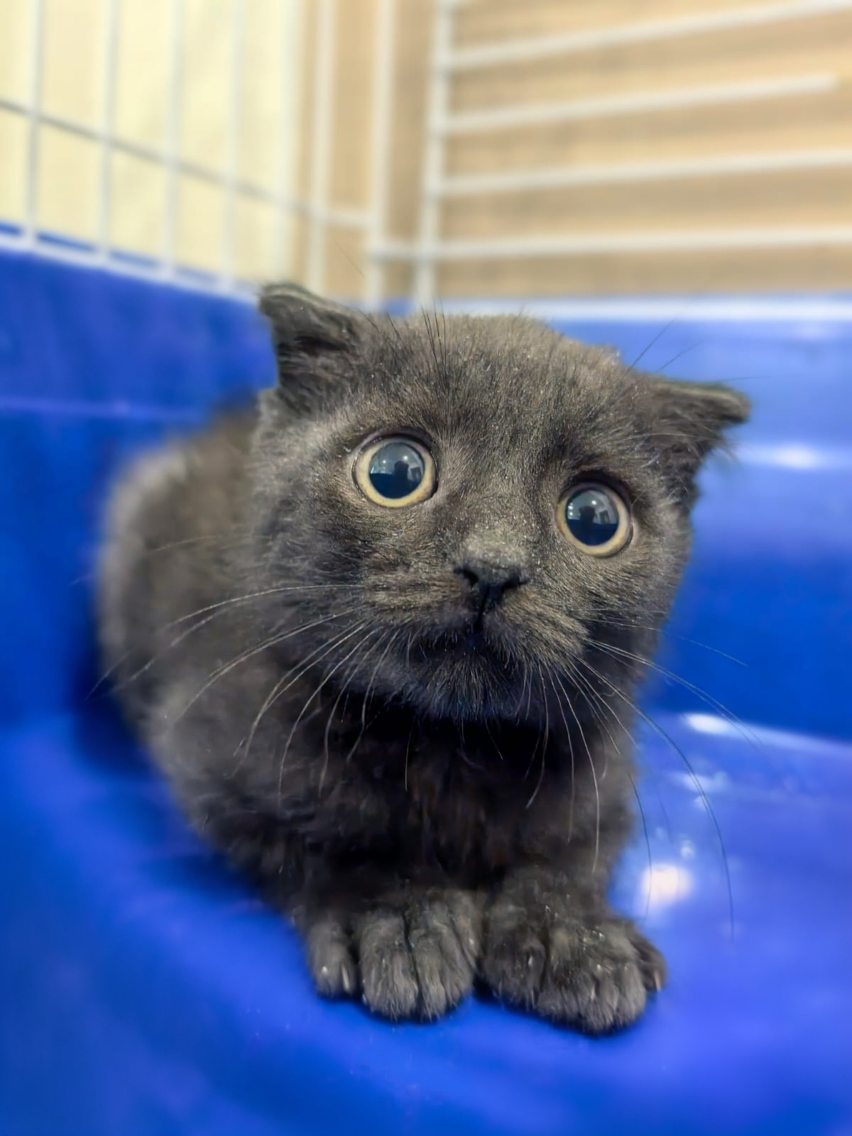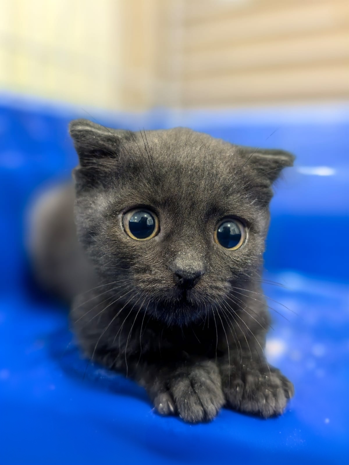 🐾🐾🐾О чём грустит маленький вислоухий котёнок? О том, что несколько дней отроду его с другими малышами положили в грязную коробку на вонючую тряпку и вынесли в лесополосу умирать. О том, что он не узнал материнской ласки и заботы, и не резвился, беззаботно играя с другими котятами. О том, что он проводит своё детство в клетке, иногда скромно требуя внимания, попискивая тонким голоском. О том, что он постоянно висит на прутьях клетки, выглядывая между ними своими округлившимися от недоумения глазками...