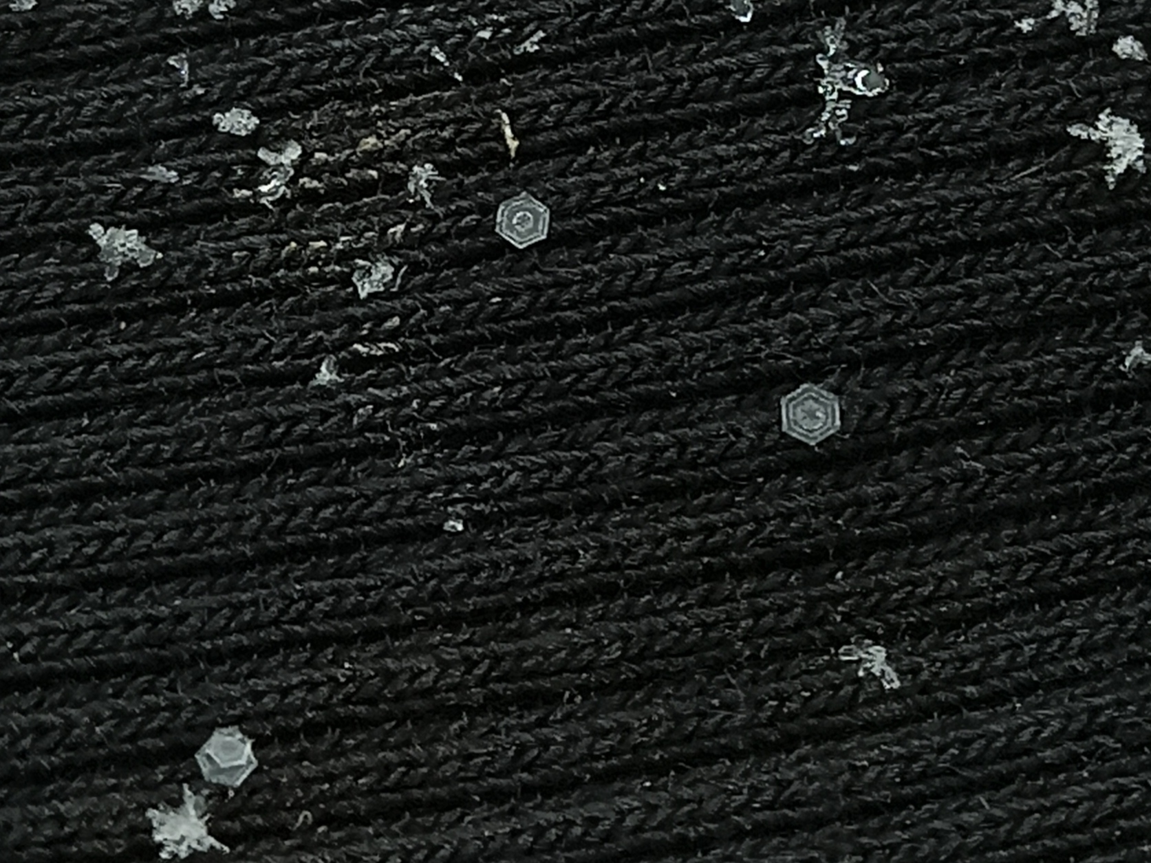 Вышел на улицу, а вокруг красотень. Словно всё глиттером обсыпали. Редкое сочетание мороза и снегопада, видимо, в облаках создались условия для формирования идеальных снежинок.