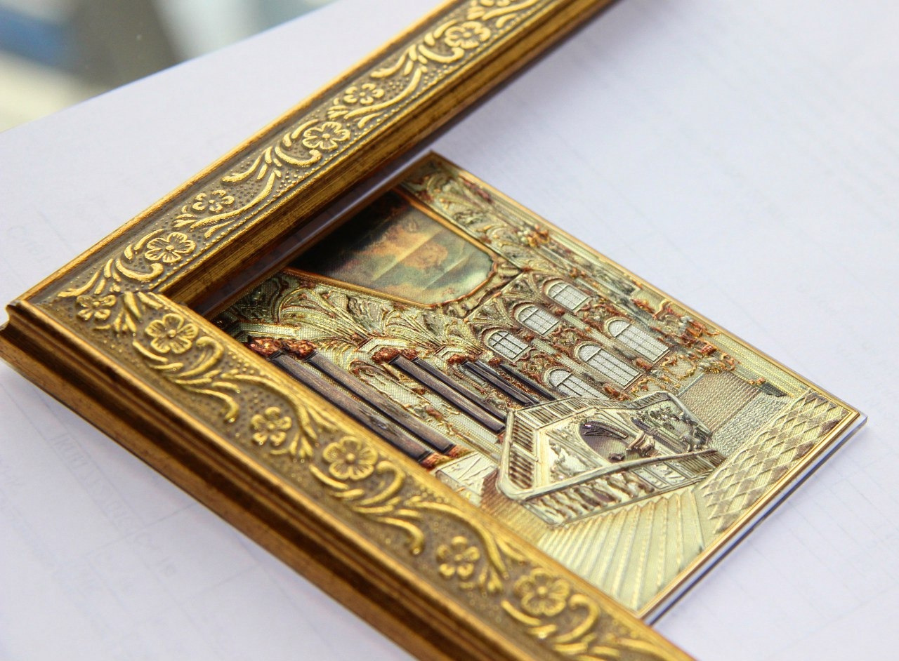 Да-да, это магнит, объёмный и переливающийся, с изображением Иорданской парадной лестницы.