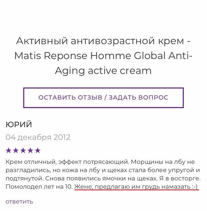 12 ShaltaiBoltai 5 лет назад Чудо крем Наткнулся на отзыв о креме против морщин, интересно, опробовал ли он на жене его и каков эффект?)) Отзыв Юмор Скриншот Косметика Ещё 0