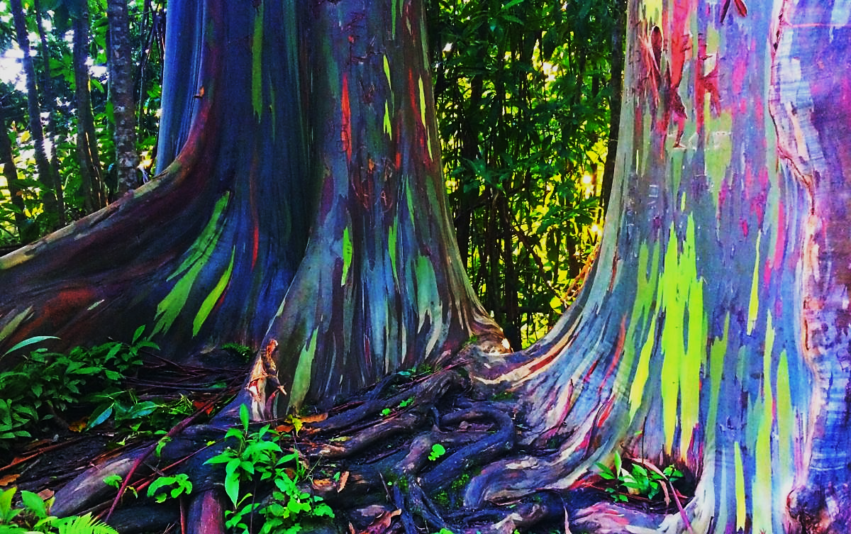 Самая известная роща радужных эвкалиптов находится на острове Мауи, который входит в состав Гавайского архипелага. Этот волшебный разноцветный лес выглядит настолько фантастически, что его посетителям кажется, будто они попали на другую планету.