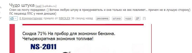 NIKOLEX Чудо штука 12 лет назад Спам на почту порадовал :) Воткни любую штуку в прикуриватель и она только на аккумулятор повлияет.. причем не в лучшую сторону) [моё] Рекламма Штука Чудо Др