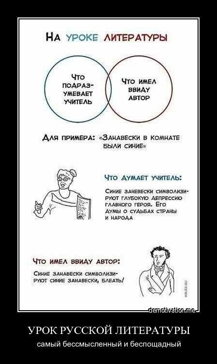 ну это шутка на тему сочинений в школе " что имел ввиду автор этого произведения описывая синие занавески" в представлении "ценителей и знатоков" синие занавески означают глубокую задумчивость и депрессию, а по мнению нормальных людей "синие занавески" - это СИНИЕ ЗАНАВЕСКИ СУКА, ЧТО ТЕБЕ НЕПОНЯТНО БЛЯТЬ!?