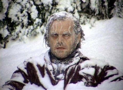 Было бы драматичнее, если бы надпись "я замерз" была написана не до конца и рядом бы лежало скрюченное тело)