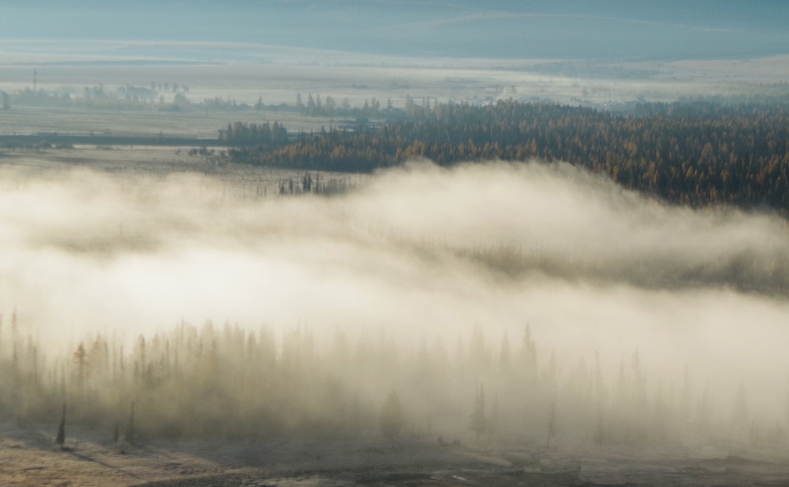 Так мы встречали рассвет на холме. Утренний туман сделал картинку объёмной