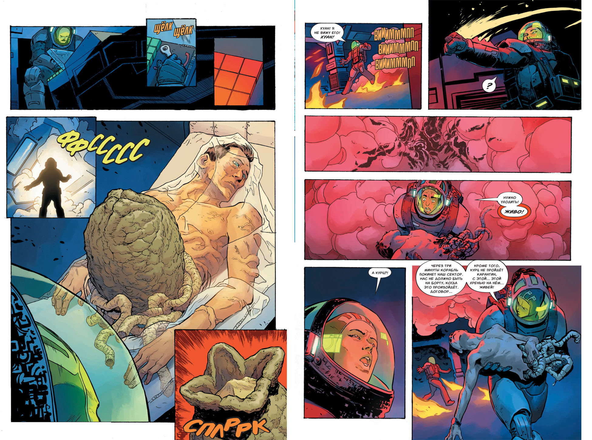 И что-то мне кажется, что Уорд либо с самого начала решил порофлить над горе-организаторами, либо ещё не отошел от своего Нафигатора, но они на пару с Фазаной выдали следующее: звездолет с опять, сука, Рипли на борту (остальные померли) садится на космическом монастыре. И не просто монастыре, а на станции.