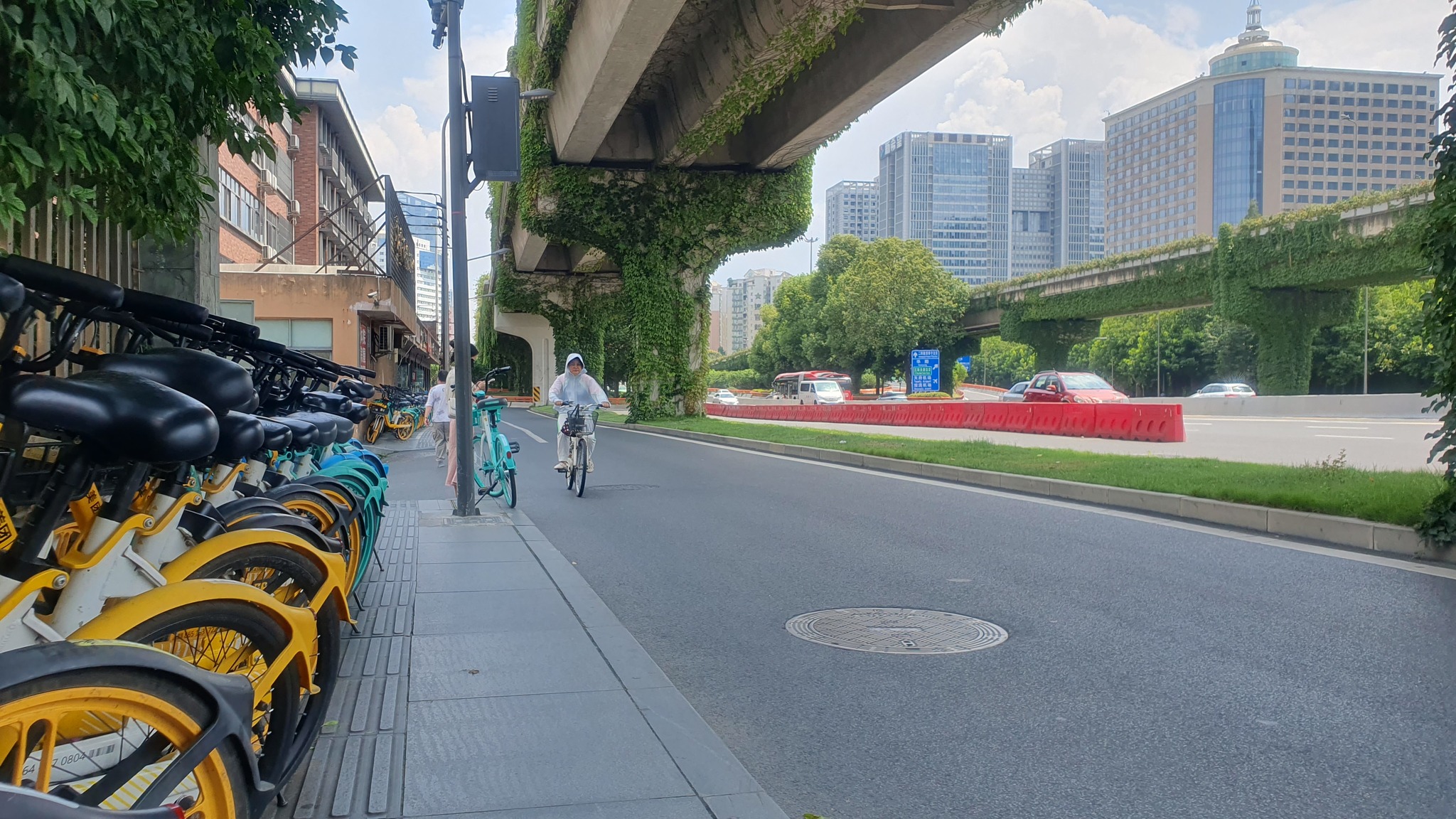 Безумно много велосипедов. (Прокатные велики в безлимите на месяц 15¥ всего) Мопедов, в том числе электрических, тоже полно.