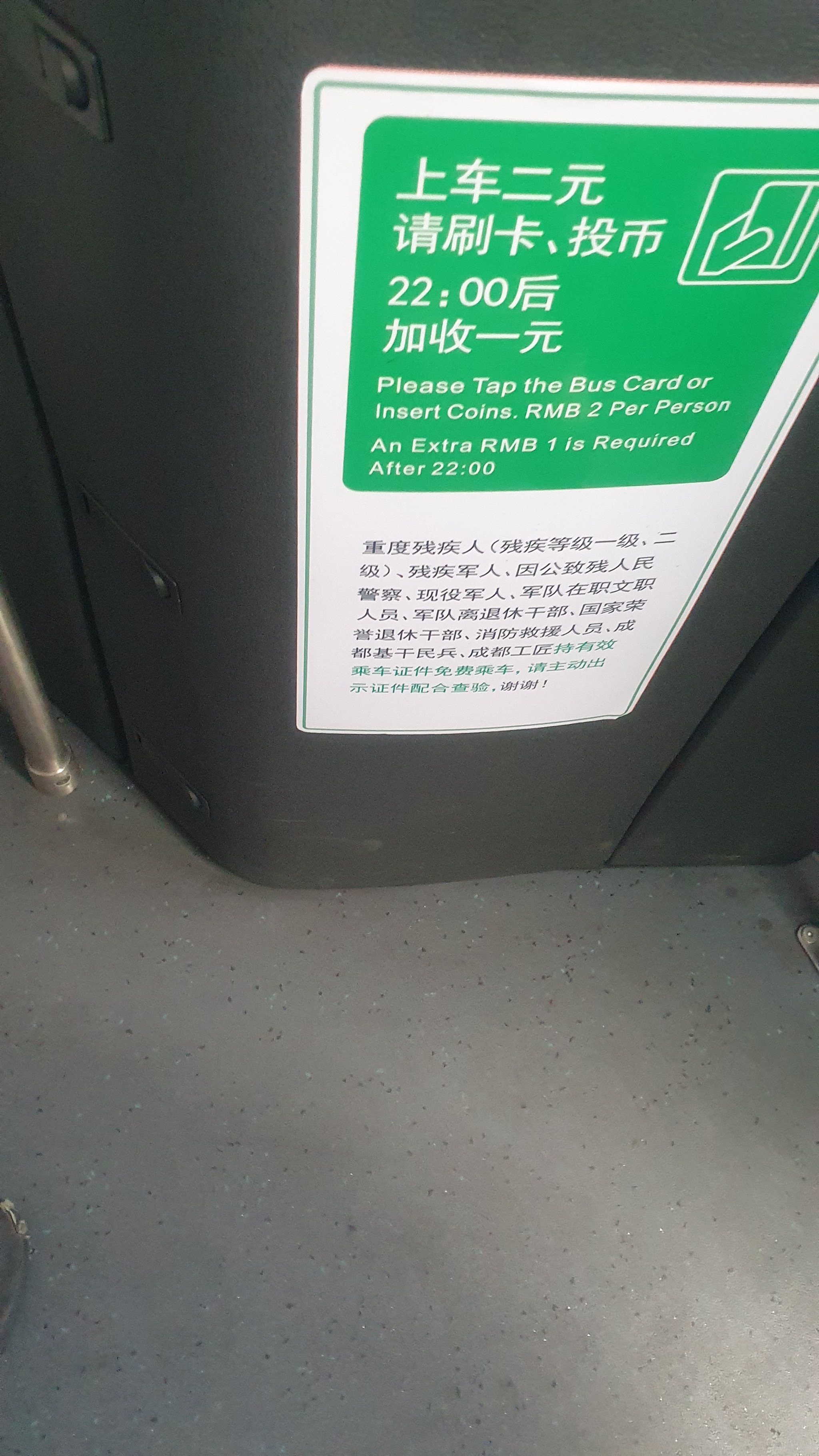 Общ. транспорт в городах Китая представлен автобусами и метро. Никаких троллейбусов я не видел. Проезд в метро зависит от дальности поездки. Чем дальше, тем дороже. (В Азии вроде везде так) Зато проезд в автобусе стоит 2¥ (26 руб на 2023 год), и это в городах-миллионниках как Сиань, Чэнду. В Урумчи проезд стоил вообще 1¥. Ночью автобусы продолжают ходить, цена увеличивается на 1¥.