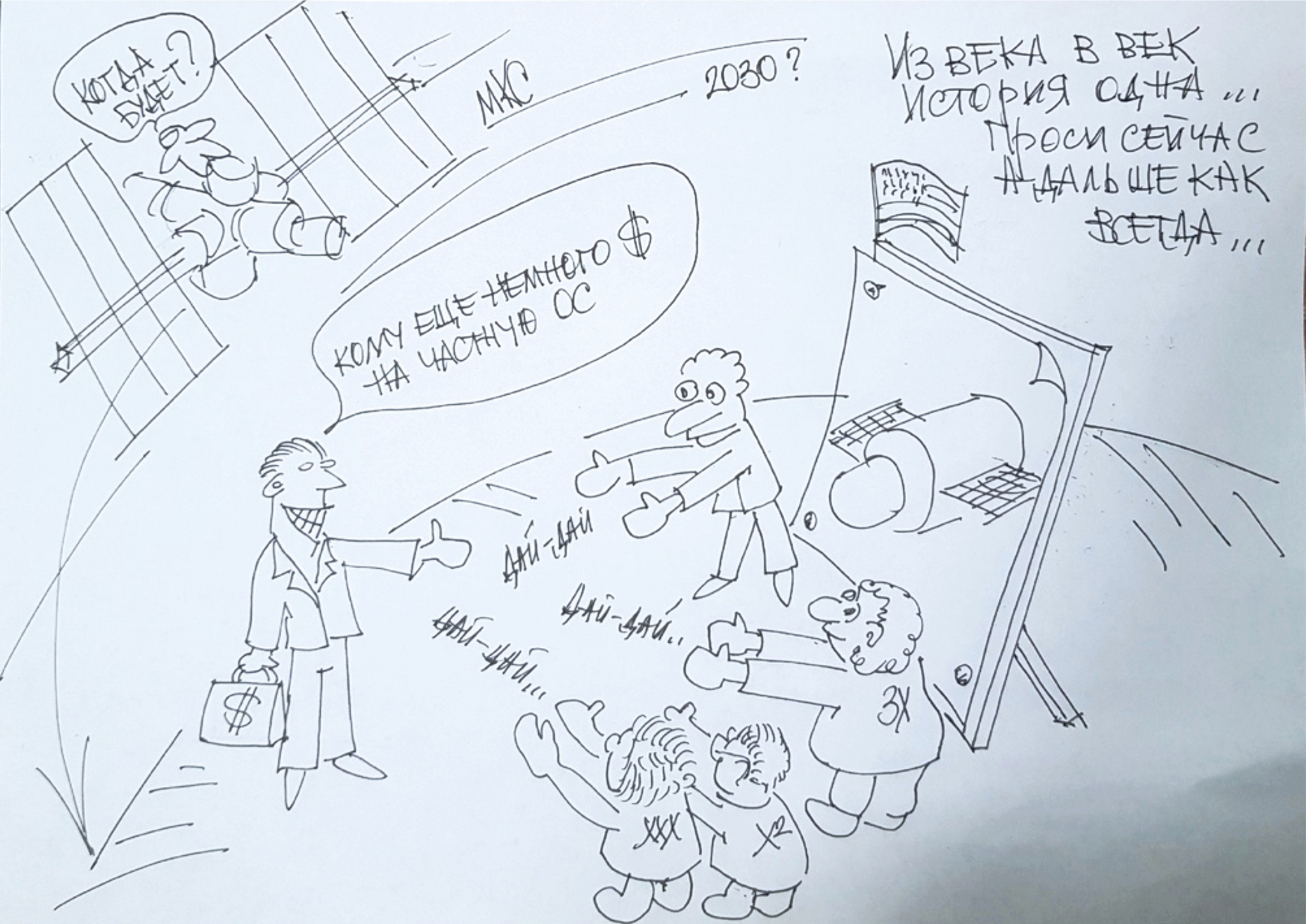 Второе, это разворачивающаяся на наших глазах цирковая антреприза - «строительство частной орбитальной станции». То, что это цирк, следует из простого факта - современная орбитальная станция стоит 10+ миллиардов долларов (в минимальном варианте «консервная банка со шлюзом и сортиром»). А денег нет… Частников с таким бюджетом не видно. НАСА выделяет пока небольшие «подьёмные» в размере условных 100 млн долларов претенденту. Условия получения простые - прочитать и попытаться понять требования НАСА и нарисовать что-то соответствующее заказанному. Что-то ожидать, кроме восторга и смеха, от этой труппы не стоит.