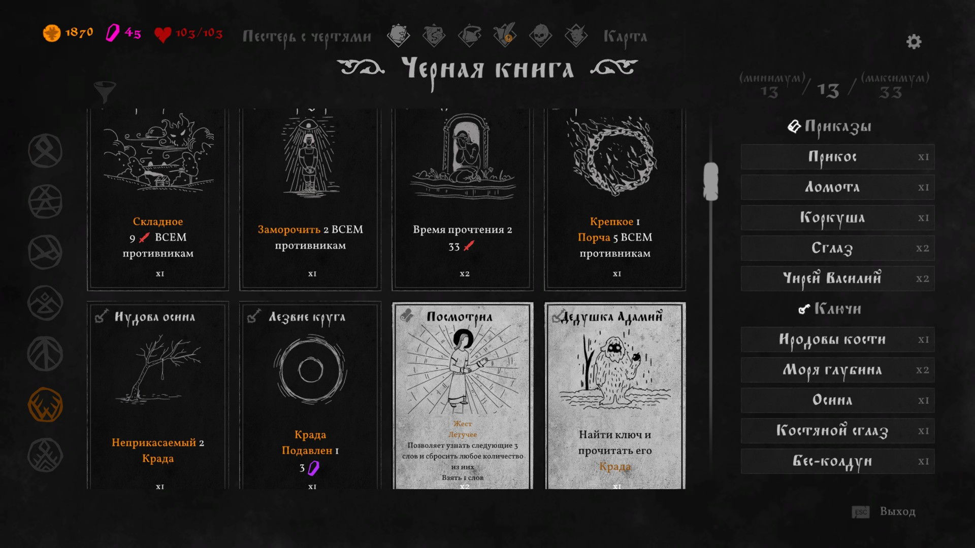 «Чёрная Книга» погружает игроков в загадочную атмосферу, где тёмные леса и мрачные пейзажи создают ощущение таинственности и напряжения. Музыка в игре усиливает этот эффект, с помощью меланхоличных и мистических мелодий, которые подчёркивают элементы фольклора и колдовства. Тёмные цвета, тихие леса, засыпающие деревни, тщательно подобранный саундтрек и потрясающая озвучка персонажей делают игру по-настоящему захватывающей и атмосферной. И самое главное — в «Чёрной Книге» можно поиграть в дурака с чертями!