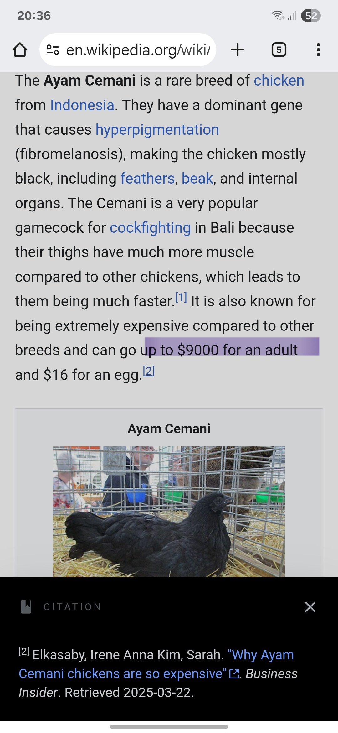 А вот в Европе и США чёрных куриц разводят исключительно в декоративных целях, и можно понять, почему. При пересечении границы родной Индонезии стоимость несушки взлетает более чем в 10 раз, и птичка оценивается примерно в 2500 долларов. Но, с другой стороны, почему бы и нет? Пусть лучше состоятельные любители дорогущих экзотических животных специально выведенными элитными породами кур занимаются, нежели диких зверей из природы изымают.