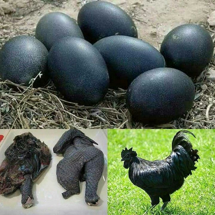 Не-а. Самая настоящая курица, и цвет у неё самый что ни на есть настоящий. Вот такое чудо совершенно случайно получилось у заводчиков из Индонезии и стало очень дорогой декоративной породой, которой дали имя «аям чемани», что, собственно, и переводится с индонезийского как «чёрная курица».