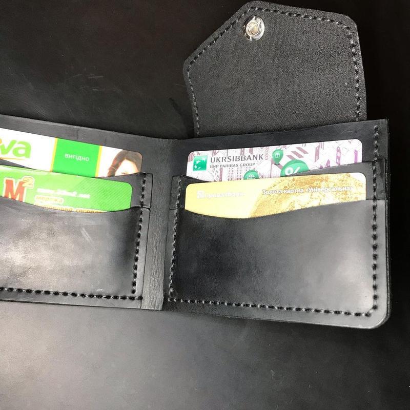 Чёрный кошелёк из натуральной кожи КРС Crazy Horse, данное изделие прошита ручным седельным швом.