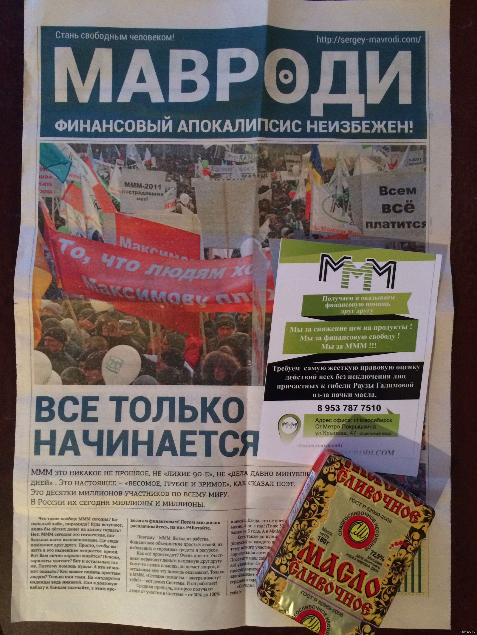 1 Sirse Чёрный пиар МММ на смерти блокадницы 10 лет назад Сегодня на выходе из супермаркета Магнит раздавали комплекты, состоящие из агитгазеты МММ, небольшого флаера, на 75% состоящего из агитации и (!) пачки масла [моё] Магнит Новосибирск МММ Блокадники