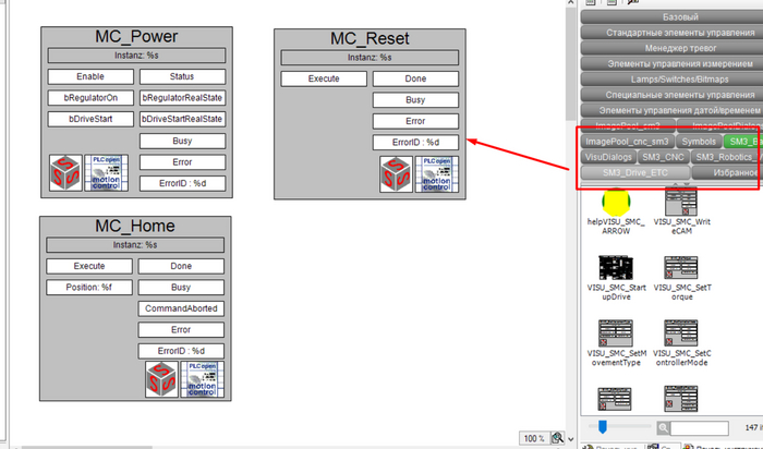 Можно создать визуализацию, и на ней перекинуть базовые блоки Soft Motion.