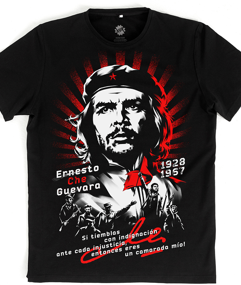 В самом низу знаменитая цитата Эрнесто: «Если у вас начинается дрожь негодования при каждой несправедливости, то вы мой товарищ!», ну и его подпись.