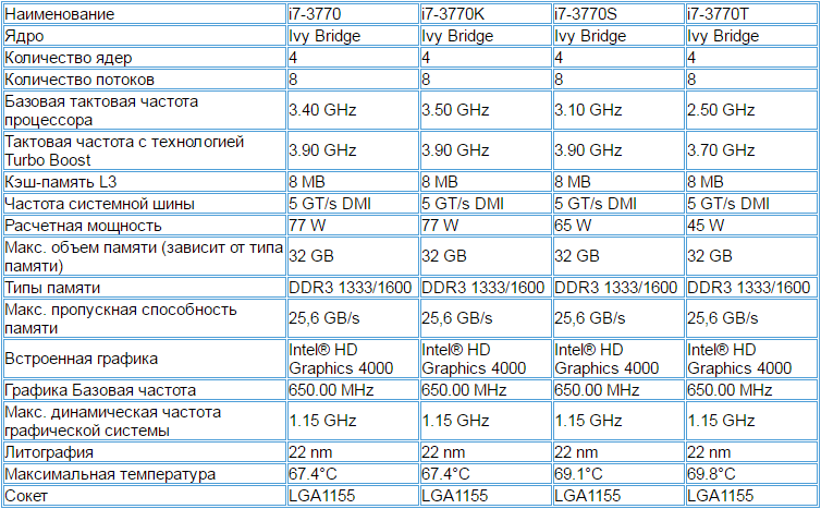 Недавно решил собрать таблицу процессоров intel I7 3-го поколения в основу взяты только основные параметры.