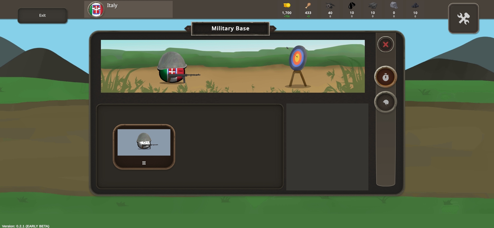 Когда мы зайдем в свою провинцию, увидим что у нас есть разные здания для строительства. Самые важные ресурсы для меня это еда, метал и деньги. С помощью них можно построить армию пулемётчиков. Почему именно их? Да потому что у Италии пока есть только один маленький танк в этой игре, а винтовки бесполезны из-за меньшей гибкости в стрельбе (пулемёты стреляют 3 раза и все три пули можно пустить в по выбранным врагам. Также суммарно все три выстрела дают урон больший чем у винтовки. Танки кстати есть у очень маленького количества стран и вы можете их и не увидеть у себя.
