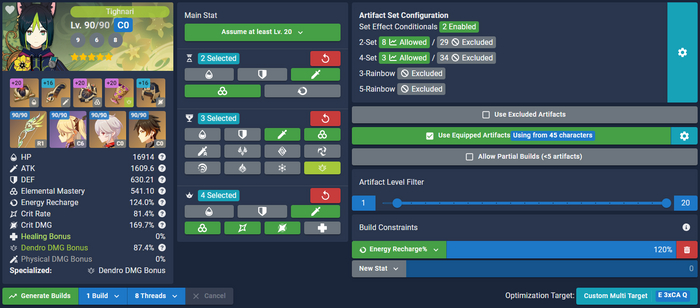 Genshin Optimizer - вариант для самых отбитых, т.к. надо немного (много) разобраться в том, как настроить выборку и забить имеющиеся артефакты ручками в базу.