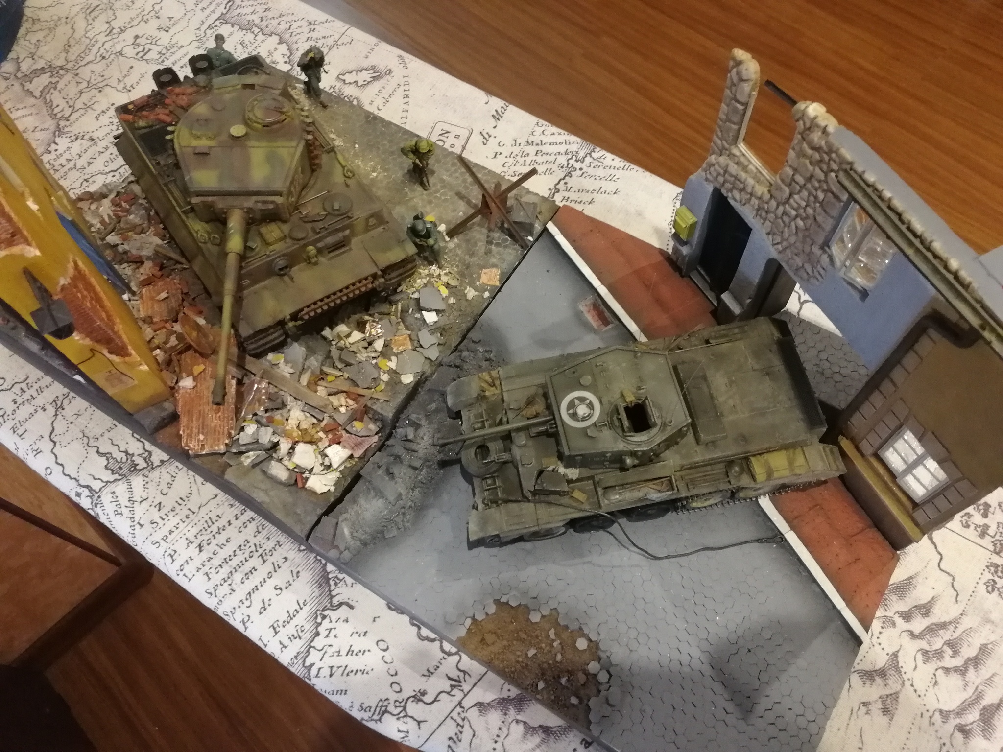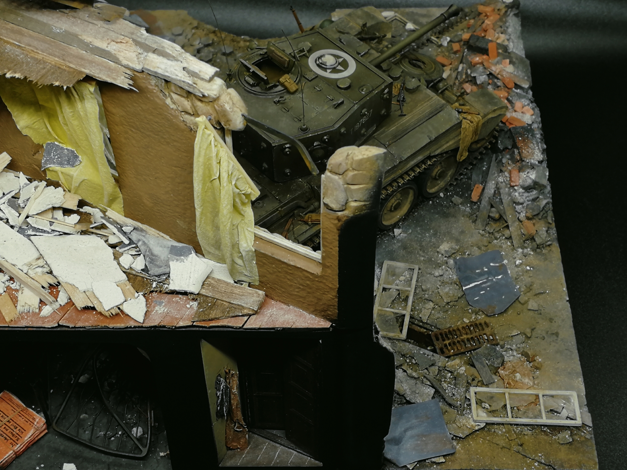 Покраска и примерка сюжета, он взят с одной из фото в Виллер-Бокаж. Основание из того же вспененного полистирола, который я всегда использую.