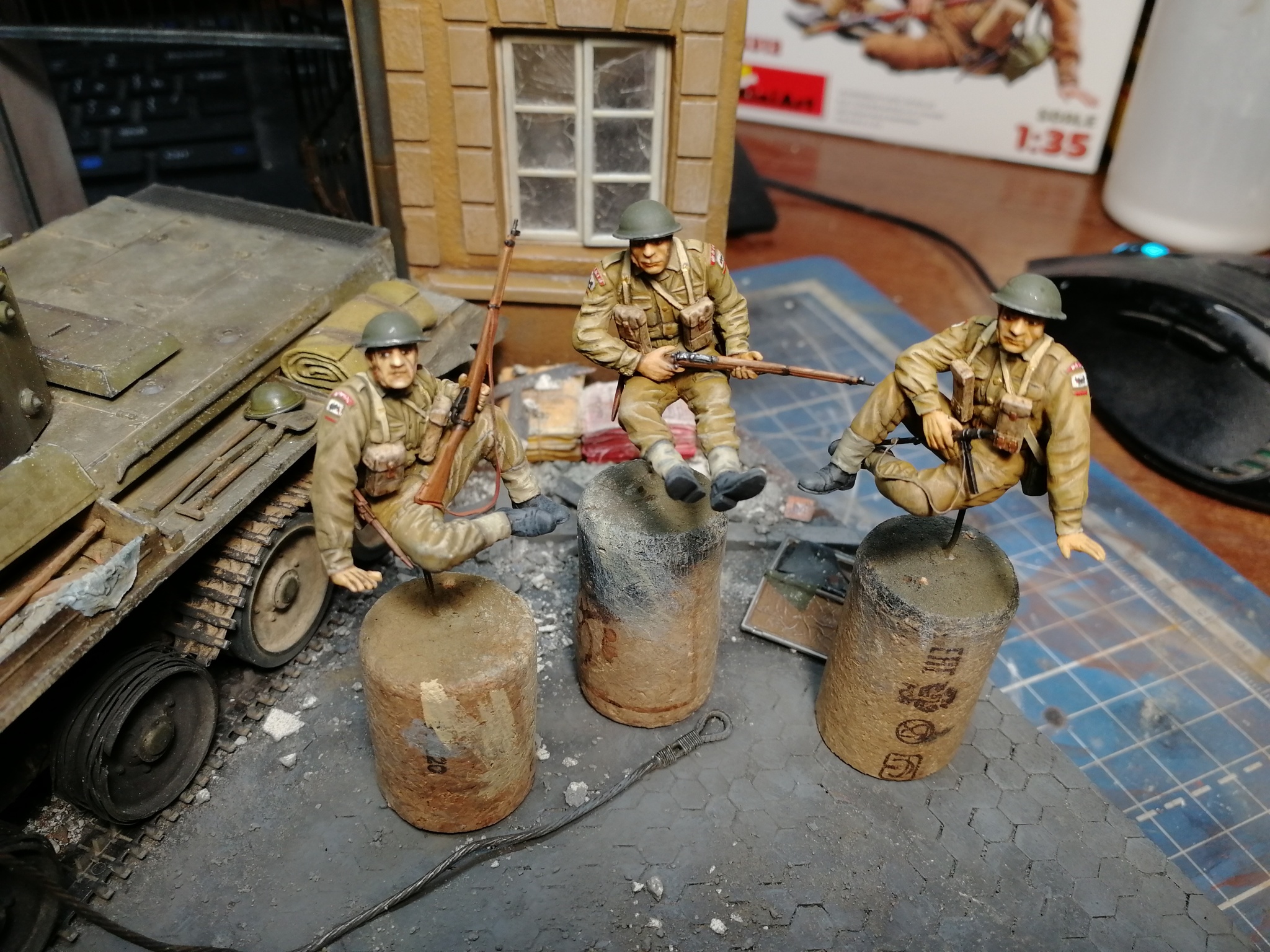 Британский танковый экипаж от Miniart покрашенный акрилами готовится занять свое место перед финальным фотографирование диорамы.