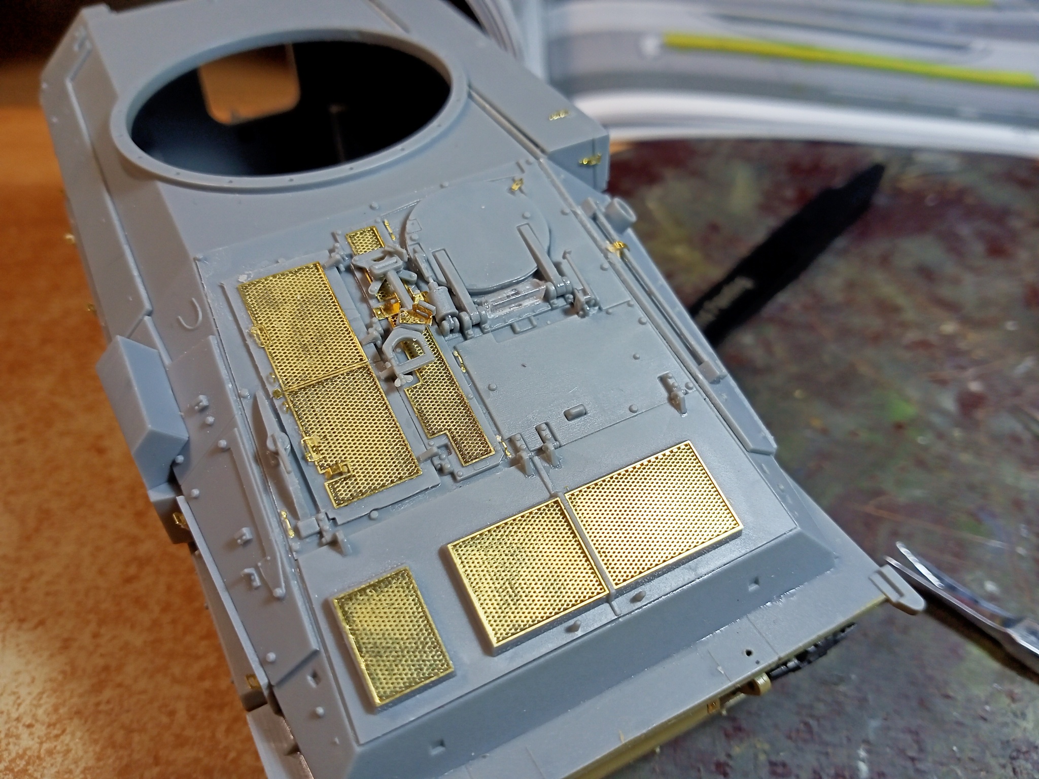 Продолжаем работу с корпусом, крепим множество травлёных элементов...
