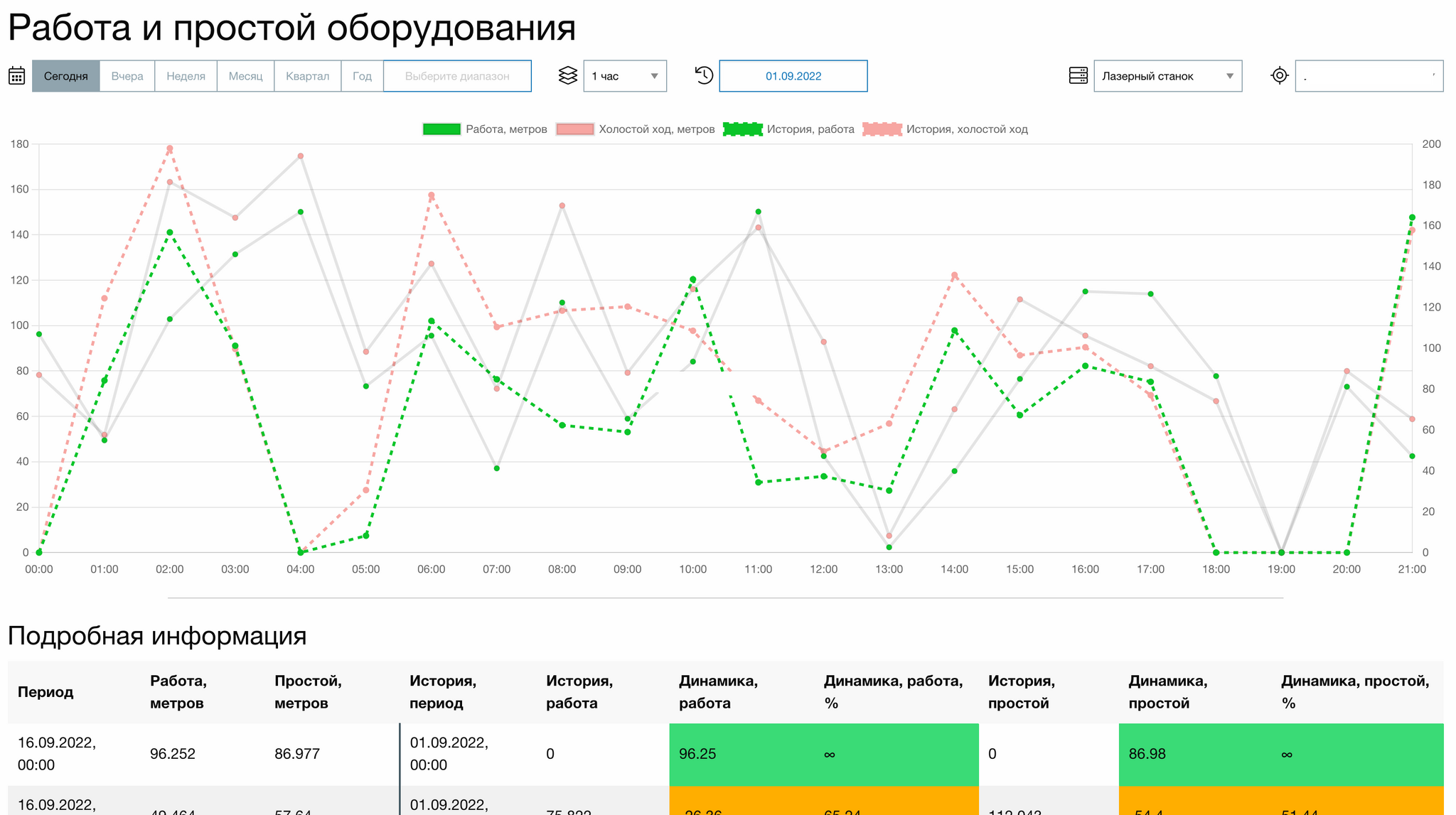 В чем считать производительность (эффективность). Здесь у каждого свое мнение, но так как станок режет метры, то логично метры и смотреть. Все учтено по метрам. На графике месяц и это загрузка станка.
