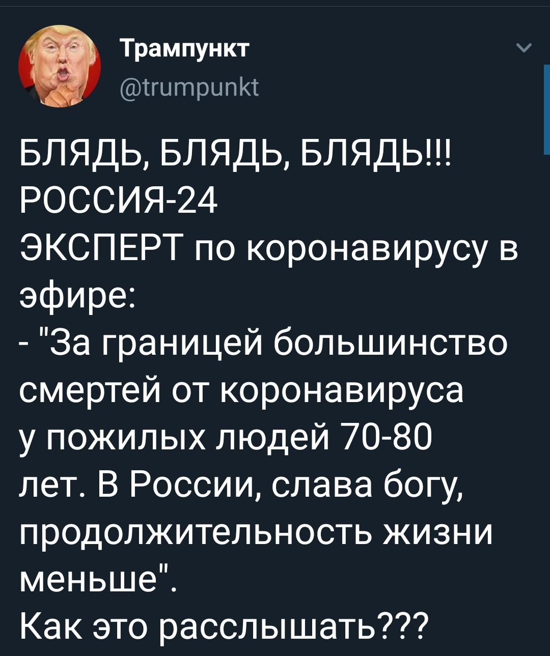 Мы все сделали для того, чтобы люди не гибли от коронавируса. Они просто не доживают до этого возраста :))