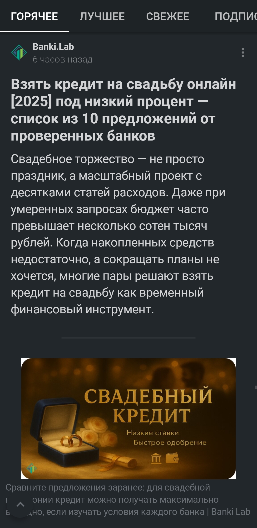 Листая ленту, наткнулся на странный пост, рассказывающий о том, в каких банках лучше взять кредит на свадьбу: