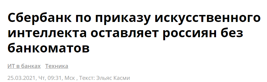5 DELETED Да что этот ниг..., тьфу, искусственный интеллект себе позволяет? 4 года назад https://www.cnews.ru/news/top/2021-03-25_sberbank_po_prikazu... Искусственный интеллект Сбербанк Банкомат Будущее наступило Заголовки СМИ Ещё 0