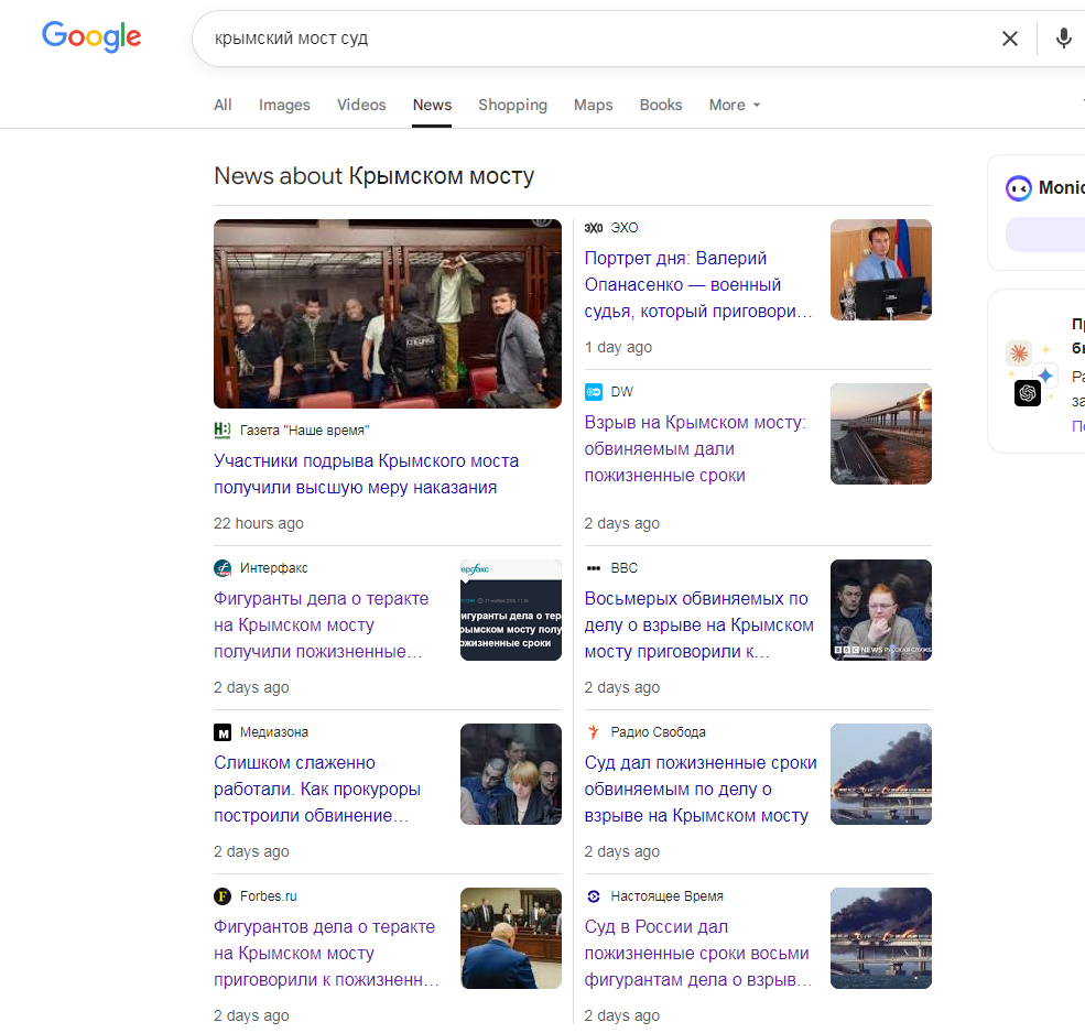 Как сообщили в пресс-службе суда, установлено, что в период с 3 марта по 2 августа 2022 года неустановленные лица создали организованную группу в целях совершения террористического акта на Крымском мосту.