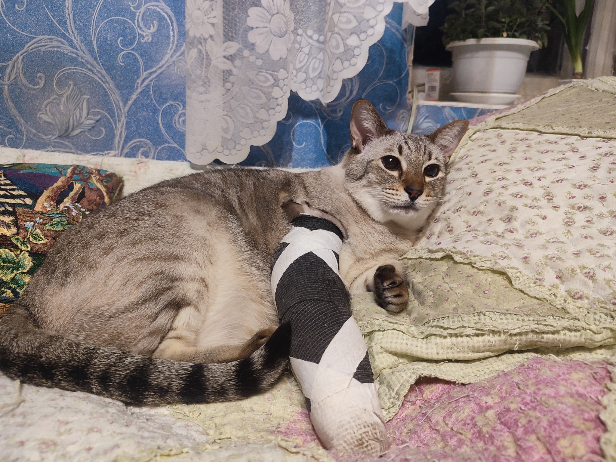 На сегодняшний день уже без гипса, но в ветеринарке сказали что хромать будет до конца жизни. Даëм лекарства для сустава. Надеемся что поправится...