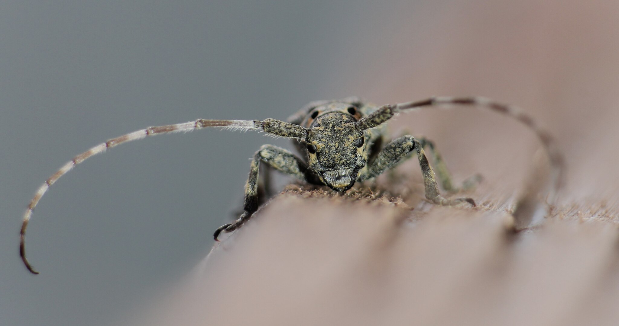 Данный господин оказался невероятно покладистым и никуда не уходил и даже не двигался. Разрешил настроить свет фонаря как нужно и упереть фотоаппарат в поверхность на нужном расстоянии. В общем большой молодец. Предположительно это Большой еловый чёрный усач (лат. Monochamus sartor), но это не точно...