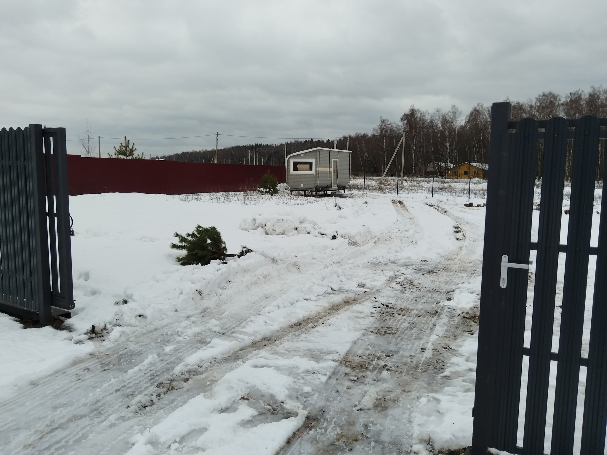 После покупки участка, был определен фронт работы: необходимо сделать заезд на участок, поставить мини-баню и огородить все забором.