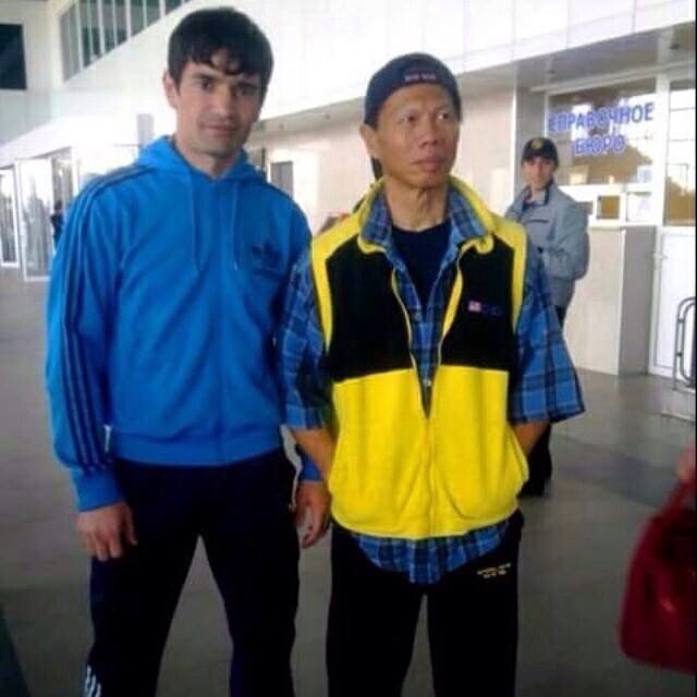 Дагестанский Брюс-Ли (Шамиль Магомедов) сопровождает Тан-По из бойвика с Вандамом в аэропорту Уйташ, Махачкала