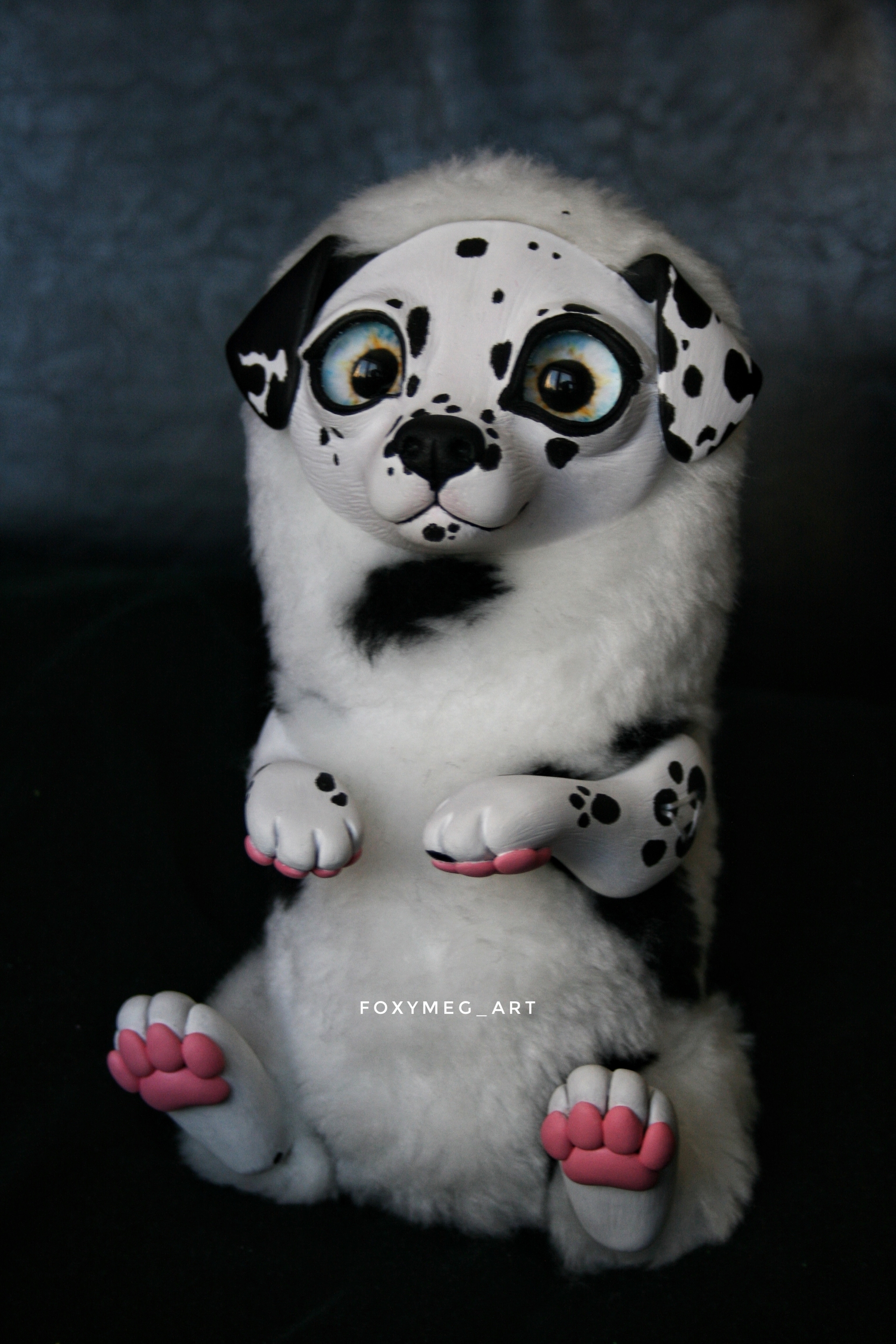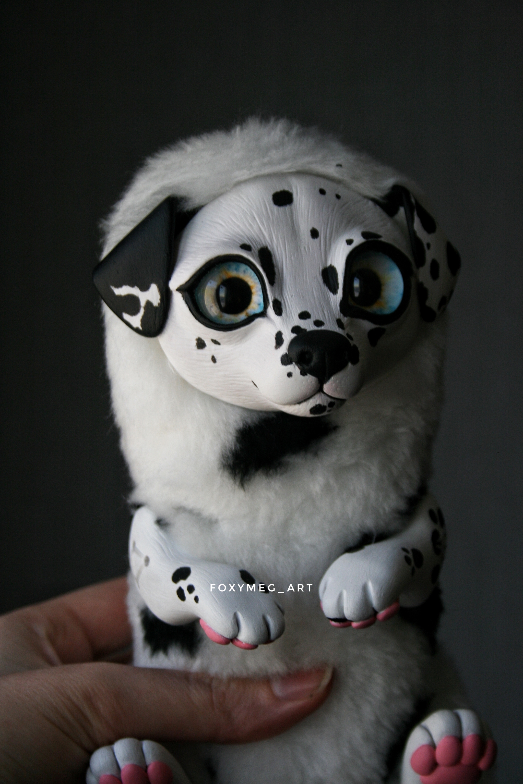 Материалы: полимерная глина, стеклянные глаза, акриловые краски, искусственный мех и синтепон.